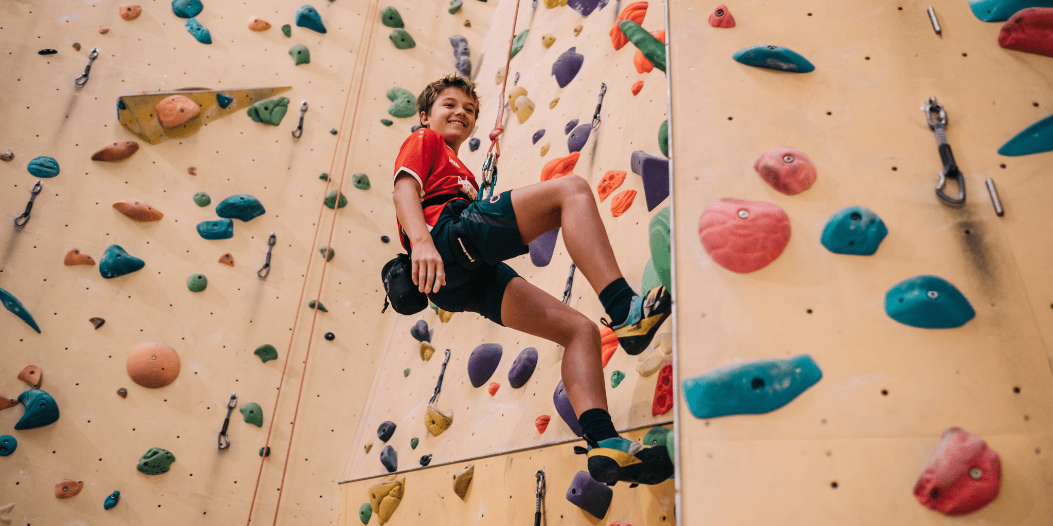 Im Klettercamp geht es hoch hinaus. Zusammen erklimmen wir die Routen im Kletterzentrum St.Gallen. Unter fachkundiger Leitung lernst du die Seil- und Sicherungstechnik. In den verschiedenen Boulderbereichen und an der Wand kannst du diverse Klettertechniken ausprobieren und beim Klettern und gegenseitigen Sichern das Gelernte gleich anwenden.